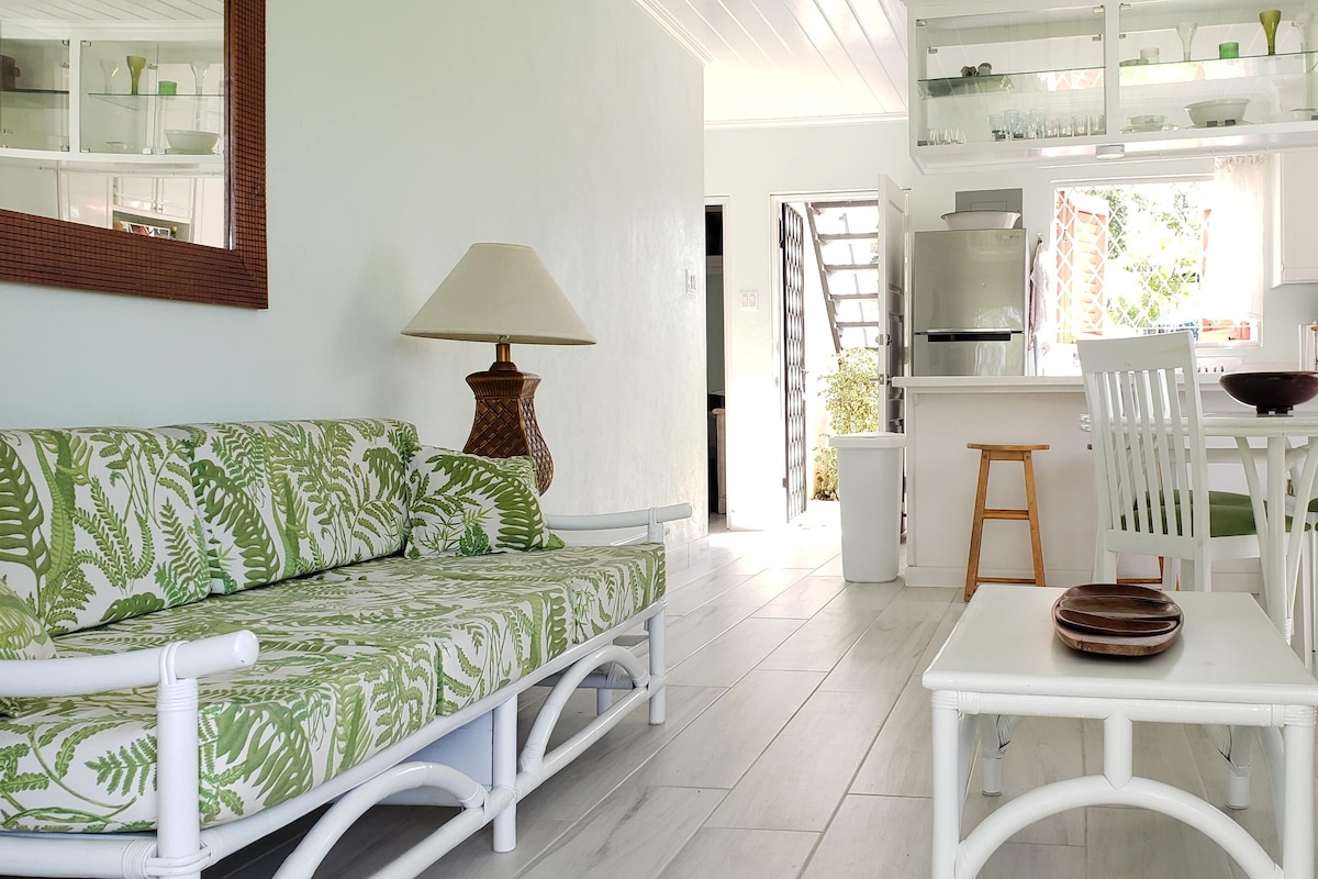 Na południowym wybrzeżu Barbados. Domek położony jest w spokojnym ogrodzie po drugiej stronie drogi od jednej z najlepszych plaż Barbadosu, Miami Beach. Apartament jest w pełni umeblowany – łóżko typu Queen, kuchnia, łazienki z prysznicem, telewizor, Wi-Fi i klimatyzacja. Posiada mały ogród, stół z parasolem i leżaki. - JEŚLI DOSTĘPNOŚĆ NIE JEST WIDOCZNA W KALENDARZU - PROSZĘ WYSŁAĆ MI WIADOMOŚĆ, PONIEWAŻ MAM WIELE APARTAMENTÓW.