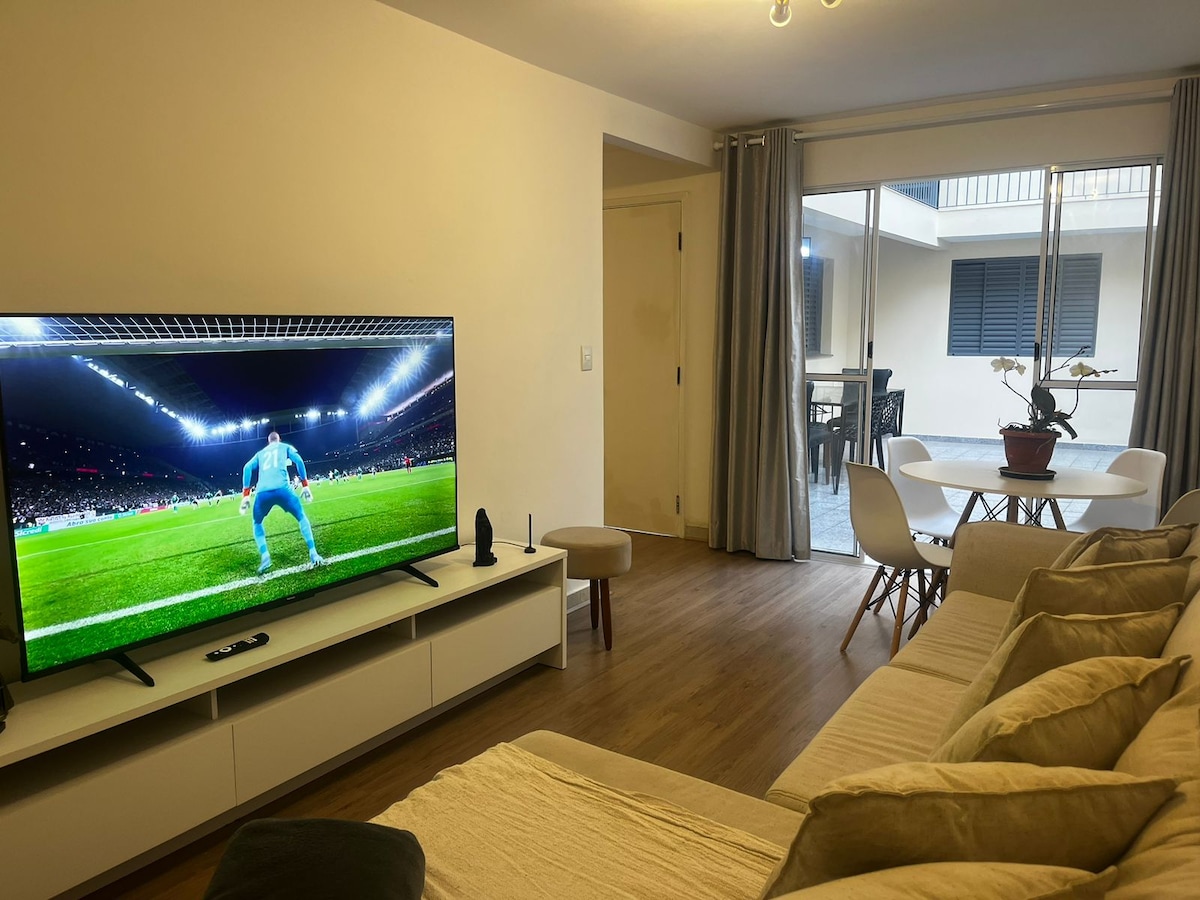 Twój wypad do São Paulo zaczyna się tutaj! Casa Ibira 1 oferuje 2 klimatyzowane apartamenty, salon z rozkładaną sofą i słoneczny balkon, a także kuchnię wyposażoną w wszystko, co niezbędne do przygotowania posiłków. Może pomieścić do 6 osób, więc jest idealne dla rodzin, grup lub osób podróżujących służbowo. Mimo że znajduje się przy Av. Brigadeiro Luís Antônio, wnętrze jest ciche i otoczone zielenią, zaledwie 5 minut od parku Ibirapuera.