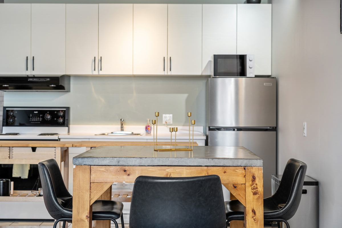 ❤️ DO DZIEŁA, OLEJARZ! ❤️ WITAMY W NASZYM ELEGANCKIM MIEJSKIM LOFCIE MAGAZYNOWYM, położonym w samym sercu Edmonton! Kilka kroków od DZIELNICY LODOWEJ i Rogers Place, Grant MacEwan, City Center Mall, Royal Alberta Museum, galerii sztuki, restauracji i wszystkiego, co centrum ma do zaoferowania. Łatwy dostęp do U of A, WEM i Commonwealth Stadium. W mieście w interesach czy dla przyjemności? Nasz stylowy loft oferuje idealne miejsce na wypoczynek. Bezpłatny parking podziemny! Klimatyzacja od maja do października! Poznaj miejskie życie w najlepszym wydaniu.
