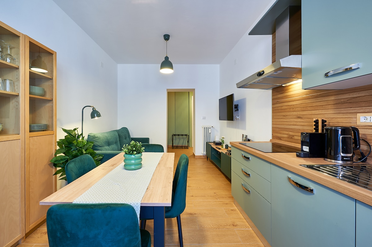 L’appartamento con terrazzo, posto all’ 8 piano di un palazzo storico, munito di ascensore è appena stato ristrutturato e finemente arredato. Composto da una zona living con divano, smart tv con i vari servizi di Netflix, Amazon prime, e un bel tavolino. -Il piccolo angolo cottura è completamente attrezzato con ogni utensile utile, microonde, frigo freezer e bollitore. Climatizzato, con riscaldamento e aria condizionata, dispone di potente Wii-fi gratuito fruibile in ogni zona della casa.