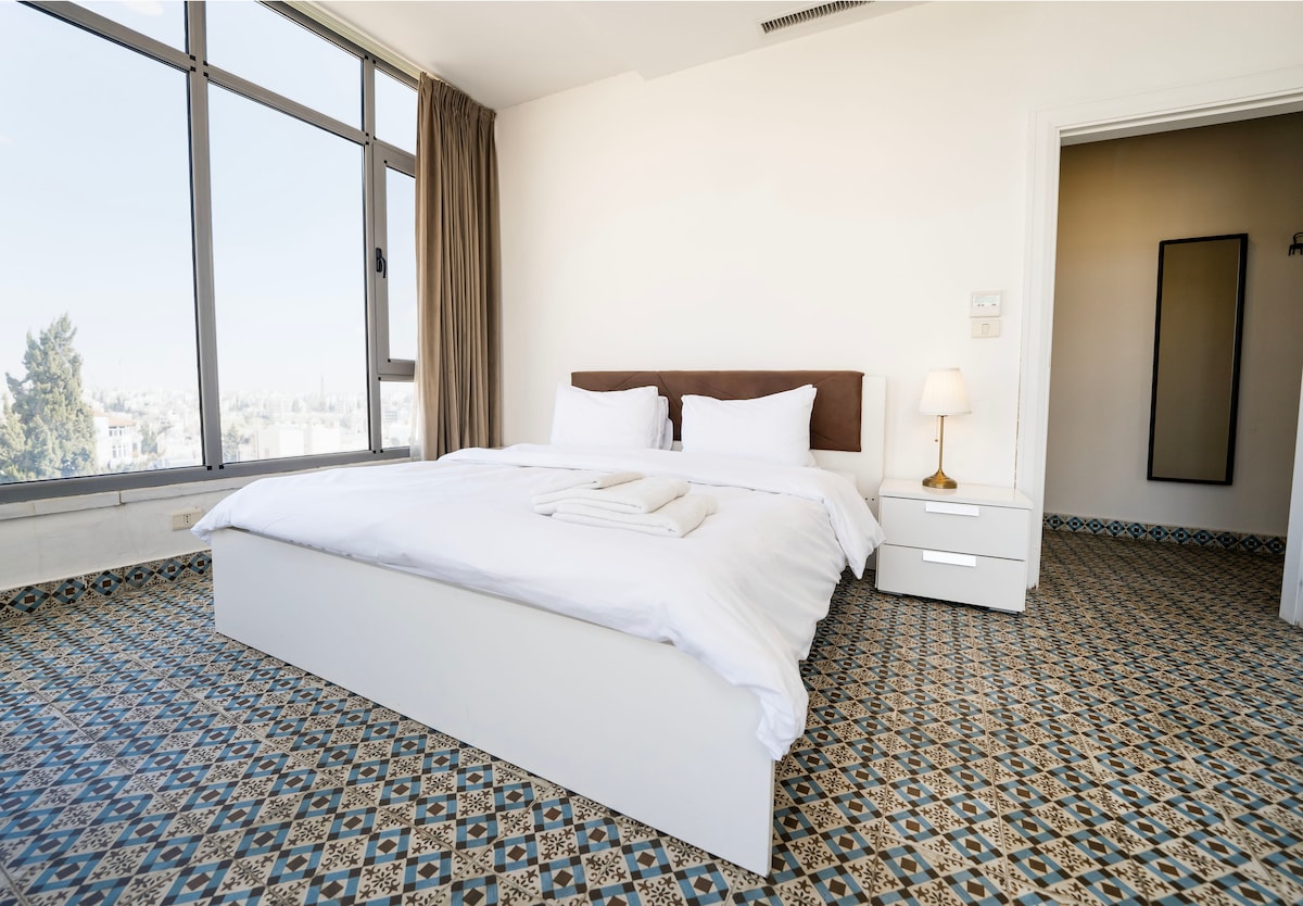 Przytulny pokój z prywatnym dachem, apartament typu studio z jedną sypialnią i wspaniałym widokiem na cytadelę i centrum Ammanu. Podstawowe warunki: 1- Gość jest odpowiedzialny za zapewnienie, że zakwaterowanie jest w takim samym stanie, w jakim było w momencie zameldowania 2- Instrukcje dotyczące zwrotu kluczy - jeśli masz wcześniejszy lot, napisz do mnie i zostaw klucze w środku 3- Zanotuj wszelkie zepsute, uszkodzone lub brakujące przedmioty w mieszkaniu lub na dachu