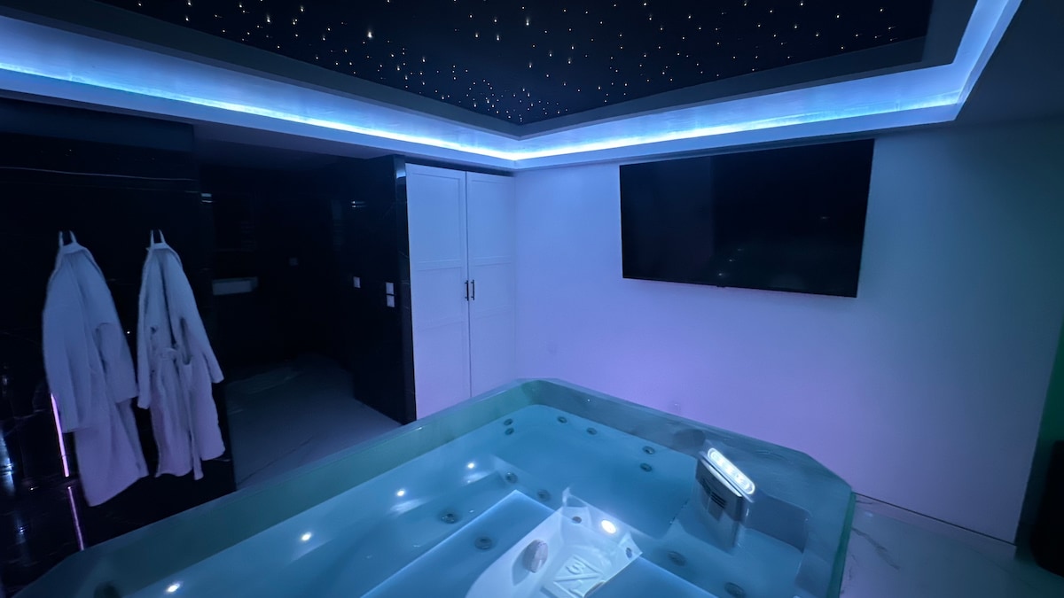 Witamy w La Perle Blanche, prawdziwym kokonie relaksu i spokoju. Skorzystaj z prywatnego jacuzzi i dużego prysznica, aby cieszyć się chwilą absolutnego relaksu. Przestronne łóżko z drugim telewizorem naprzeciwko obiecuje przytulne wieczory. Dla większego komfortu do dyspozycji gości jest skromna kuchnia z lodówką, kuchenką mikrofalową, naczyniami i ekspresem do kawy. Wszystko gotowe na niezapomniany romantyczny wypad. Zarezerwuj już teraz i daj się uwieść.