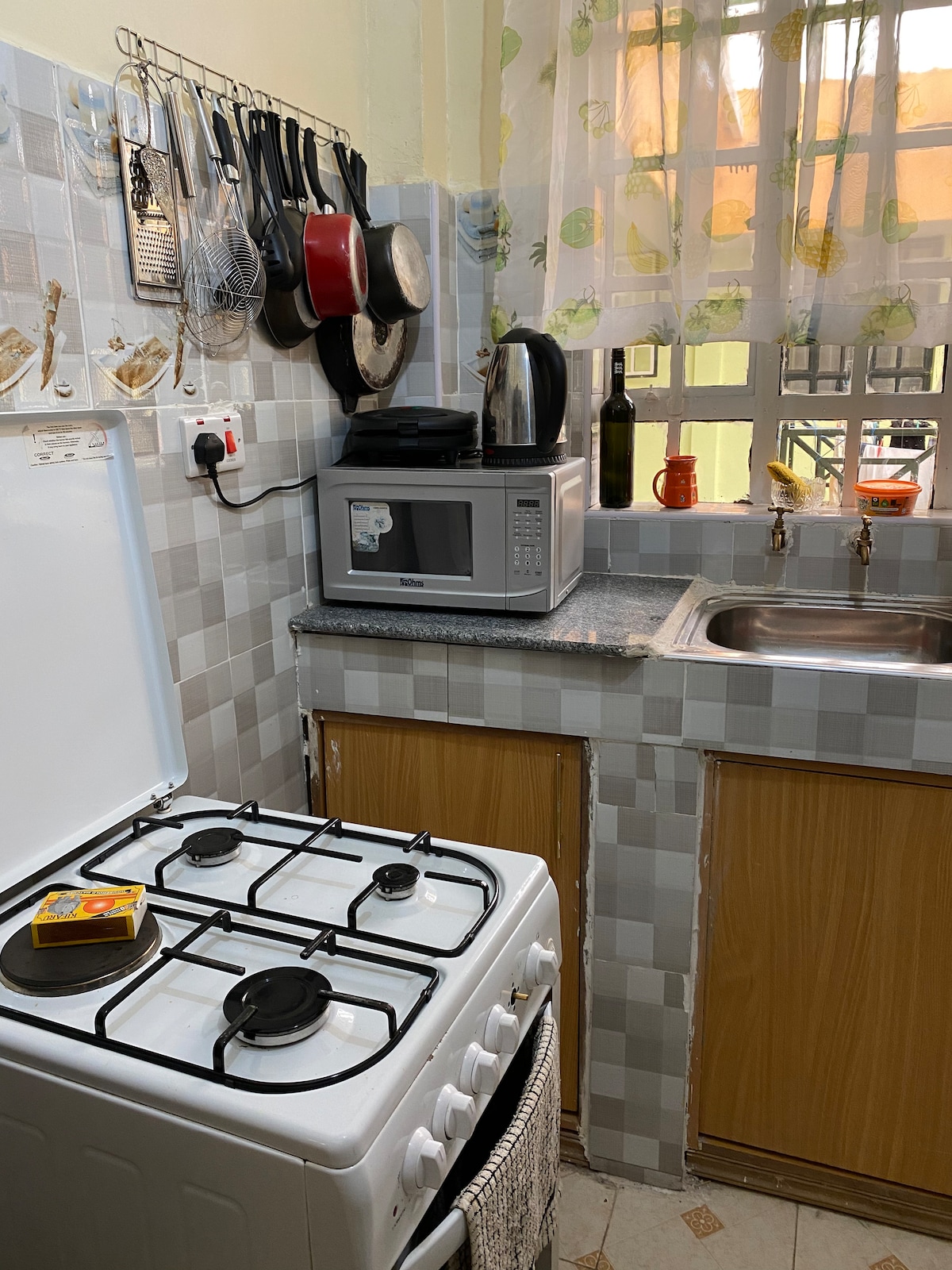 Ekskluzywny nowoczesny apartament, w pełni umeblowany, czysty, przestronny, spokojny, bezpieczny, łatwo dostępny, położony w mieście Kisii, posiadłość Nyanchwa obok szkoły specjalnej Kisii. Dostępny przez cały czas. Jest tu 43-calowy telewizor, lodówka, kuchenka, kuchenka mikrofalowa, przybory kuchenne, piekarnik, szybki internet, 1 podwójne łóżko, wygodna kanapa, przytulny dom. Miejsce to jest odpowiednie dla osób podróżujących służbowo, par, rodzin i na wakacje. Jest też bezpłatny parking, 500 m od miasta Kisi. W każdej chwili możesz się z nami skontaktować telefonicznie.