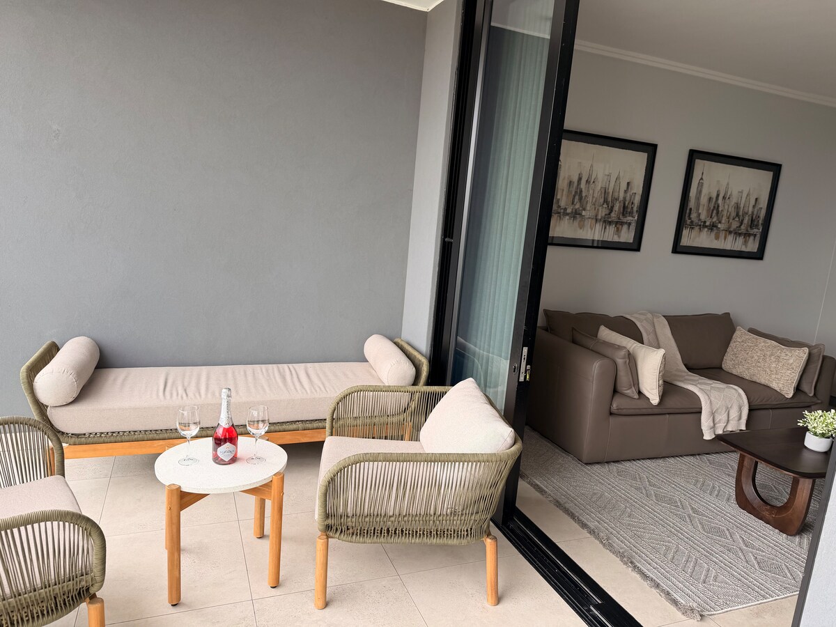 Zbierz się wokół prywatnego miejsca na grilla i zrób południowoafrykańskie grillowanie z widokiem na zielone krajobrazy w ciągu dnia i zachody słońca wieczorem. Przesuwne przeszklone drzwi prowadzą do przestronnego, otwartego wnętrza z chłodnymi podłogami z kamiennych płytek i szafkami kuchennymi z naturalnego drewna. W pełni przyjazne dla rozkładu obciążeń dzięki bateriom słonecznym i zapasowym. Brak przestojów w energii elektrycznej. Apartament ten jest połączony z głównym domem, ale ma własne wejście. Całe mieszkanie jest przeznaczone do własnego użytku. Apartament przeznaczony jest dla 1 - 4 osób. 1 oddzielna sypialnia z podwójnym łóżkiem i łóżkiem pojedynczym oraz łazienką (tylko prysznic). 1 oddzielna toaleta. 1 łóżko w salonie. Otwarty plan ma zestaw wypoczynkowy, stół w jadalni i aneks kuchenny. Kuchnia jest wyposażona w lodówkę, kuchenkę mikrofalową, dwupalnikową kuchenkę, mini piekarnik, czajnik, garnki i sztućce. Goście mogą korzystać z bezpłatnego Wi-Fi i telewizora z płaskim ekranem z pełnym pakietem DSTV. Powierzchnia wewnątrz wynosi 95 m2, a powierzchnia braai kolejne 35 m2. Goście mają wyłączny dostęp do całego apartamentu. Procedura samodzielnego zameldowania. Czasami nie jestem dostępny telefonicznie w ciągu dnia, ale zawsze można się ze mną skontaktować za pośrednictwem aplikacji AirBnB, SMS-a lub e-maila. Jeśli chcesz się ze mną spotkać, daj mi znać, a umówimy się. Apartament znajduje się w dzielnicy Lynnwood w Pretorii East. To spokojne miejsce na poranny jogging i popołudniowy spacer. Spacer do Hoërskool Menlopark i sklepu spożywczego. W pobliżu znajduje się również teatr Atterbury. Uber jest dostępny w tej okolicy. Główna droga z autobusami Gautrain znajduje się w odległości spaceru. Apartament znajduje się na drugim piętrze i można do niego dotrzeć tylko schodami.