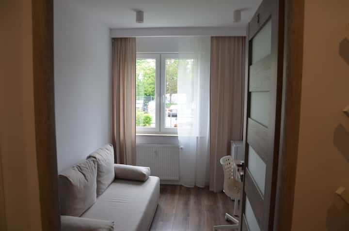 Własny pokój w domu oraz dostęp do części współdzielonych.
