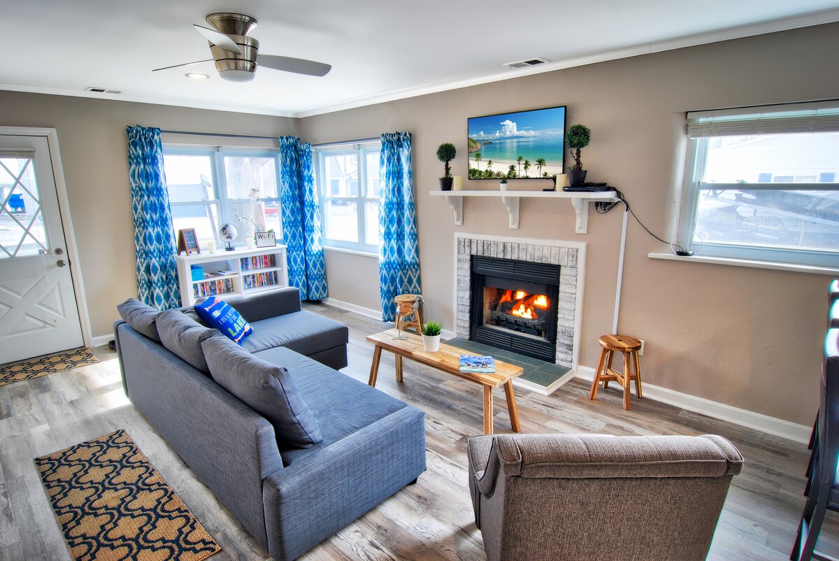 Cichy i przytulny domek nad jeziorem na wyspie Tecumseh! Idealny wypoczynek dla par/rodzin. Niesamowita lokalizacja z widokiem na okoliczne jezioro! Piękna przebudowa, stylowy wystrój. 2 sypialnie, nocleg dla 7 osób. Granitowe blaty, wpuszczone oświetlenie, kominek gazowy. Otwórz okna, aby cieszyć się przyjemną bryzą z jeziora. Udogodnienia obejmują kanapę, telewizor 4K HD z ROKU i Chromecast, szybki Internet, ekspres do kawy Keurig z bezpłatną kawą, kuchenkę mikrofalową, lodówkę, piekarnik/kuchenkę, w pełni umeblowaną kuchnię.