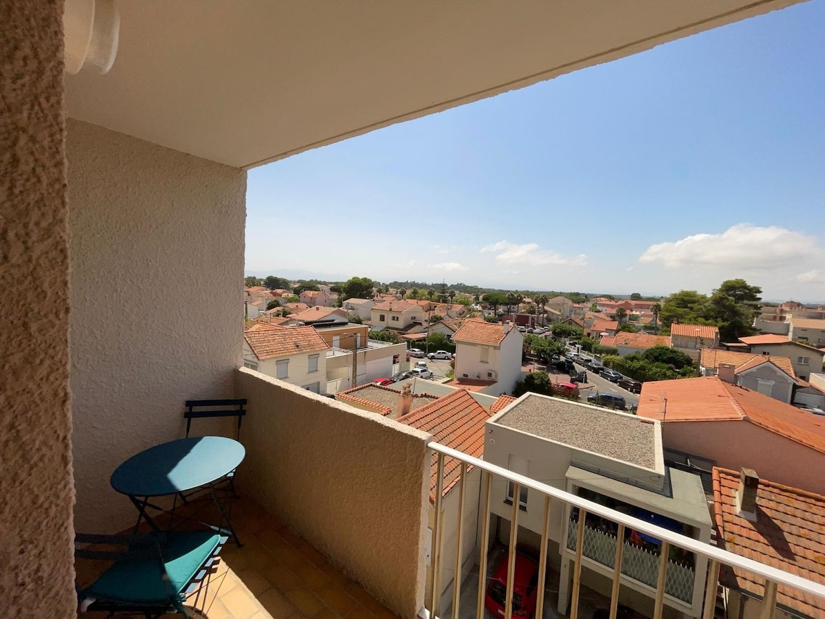 Small T2 of 27 m2 with terrace on the third floor with elevator in quiet residence (Promenade de la Côte Radieuse). 50 m od plaży, wyposażone dla 4 osób, w tym salon z częścią wypoczynkową/kuchnia z rozkładaną sofą 1,40m, sypialnia z łóżkiem 1,20m z widokiem na morze, łazienka z toaletą,bardzo przyjemny taras na lunch z widokiem na morze i Canigou kuchnia: ekspres do kawy senseo, ekspres do kawy z filtrem, kuchenka mikrofalowa, toster, zmywarka, pralka,telewizor,wentylator