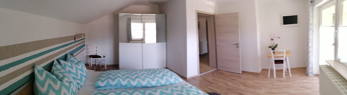 Nasz ekskluzywny apartament wakacyjny znajduje się pomiędzy Alpami Allgäu i Jeziorem Bodeńskim. Wyposażenie: – nowa kuchnia z częścią wypoczynkową - oddzielny salon z wysokiej jakości rozkładaną sofą dla 2 dzieci - sypialnia z podwójnym łóżkiem – przestronna łazienka z wanną i pralką. Możliwości spędzania wolnego czasu: Nasz apartament wakacyjny stanowi idealną bazę wypadową dla wielu atrakcji w Allgäu. W bezpośrednim sąsiedztwie znajduje się trasa rowerowa Westallgäu oraz początek trasy biegowej.