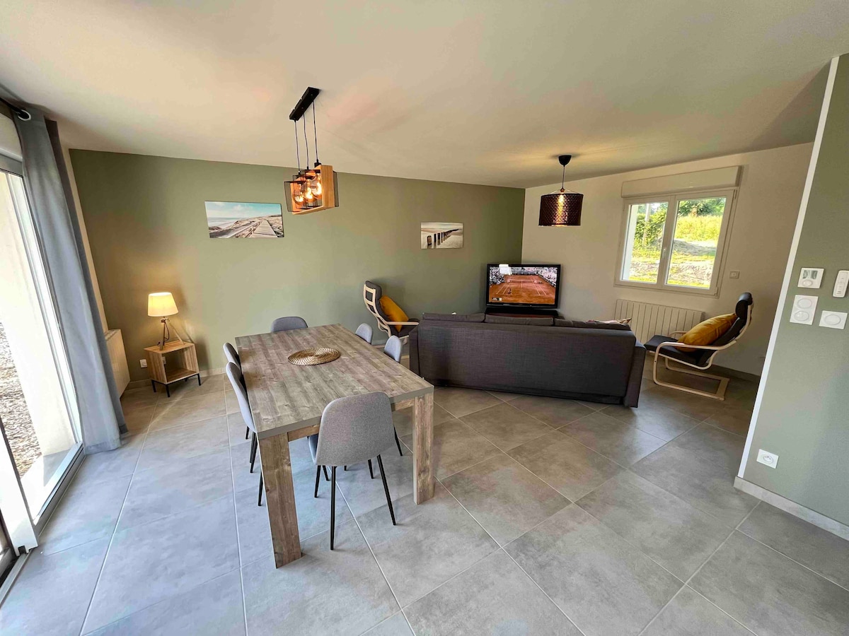 W spokojnej okolicy, w normandzkim lesie, możesz w pełni cieszyć się małym jednopoziomowym domem odnowionym w 2022 roku, a także prywatną działką o powierzchni 1800 m2 Klasyfikacja: 2-gwiazdkowy obiekt turystyczny, zezwolenie uzyskane w 2023 roku Do dyspozycji gości jest taras ze stołem i grillem. Położony 5 minut od Villedieu – la Cité du Cuivre, 30 minut od morza (Granville) i 45 minut od Mont-Saint-Michel, domek jest idealny dla tych, którzy chcą spędzić spokojny pobyt