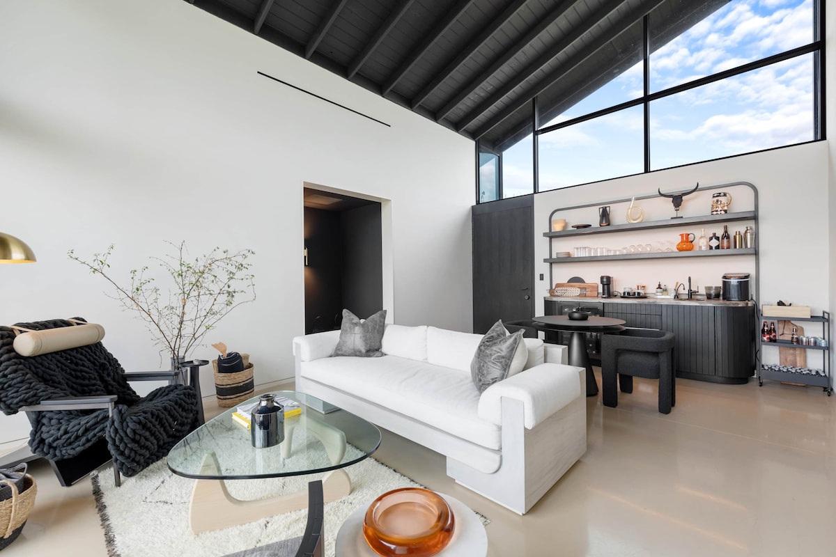 Witamy w prywatnym miejscu wypoczynku w samym sercu Teksasu – nowoczesnym gospodarstwie położonym na 7 hektarach spokojnej przestrzeni, zaledwie kilka minut od centrum Fayetteville i 24 km od targu antyków Round Top. Dom zaprojektowany w stylu lat 70. XX wieku, z czystymi liniami, oferuje wnętrza wypełnione światłem i okna od podłogi do sufitu, które zapewniają panoramiczne widoki na wzgórza i niebo. Idealne dla obserwatorów gwiazd, łowców antyków, pracowników zdalnych, miłośników przyrody lub mieszkańców miast, którzy potrzebują odpoczynku.