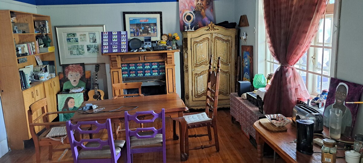 Mud Manna jest wykonany z ziemi wykopane z pobliskich i wykonane z miłością. Piękne akcenty wzbogacają rustykalną i artystyczną atmosferę, jak ręcznie robione witraże. Obrazy Sue obfitują. Dom jest otwarty plan z zasłoniętą prywatnością. Przestrzeń i widoki ze stoepu zapewnią Ci spokój i spokój. Bokmakierie, śpiewające jastrzębia, osły na polu po drugiej stronie drogi, wędrujące konie i krowy, huśtawka... samoopiekuńcza i samoobsługowa. Jest obok domu Sue.