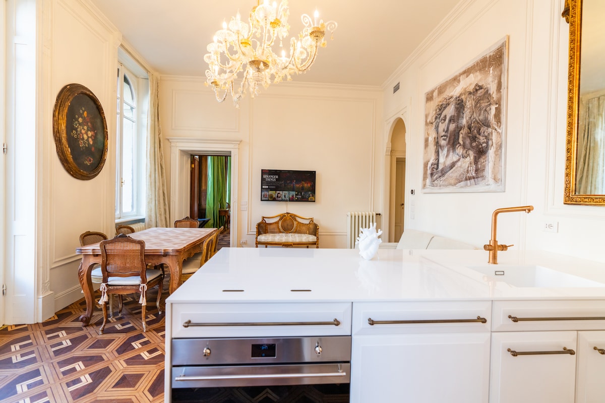 Nadszedł czas, aby przeżyć niezapomniane doświadczenie w tej uroczej willi w stylu secesyjnym z 1927 roku, położonej w pobliżu średniowiecznych murów. Penthouse znajduje się w odległości krótkiego spaceru od mostu Pietra (400 metrów), teatru rzymskiego, katedry Duomo, Biblioteki Kapitulnej oraz kościołów San Stefano i San Giorgio. Będziesz cieszyć się wspaniałym widokiem na Zamek Świętego Anioła. Mieszkanie jest idealne dla osób, które chcą cieszyć się miastem w relaksującym otoczeniu, a jednocześnie przebywać blisko historycznego centrum. @veronaluxuryapartment