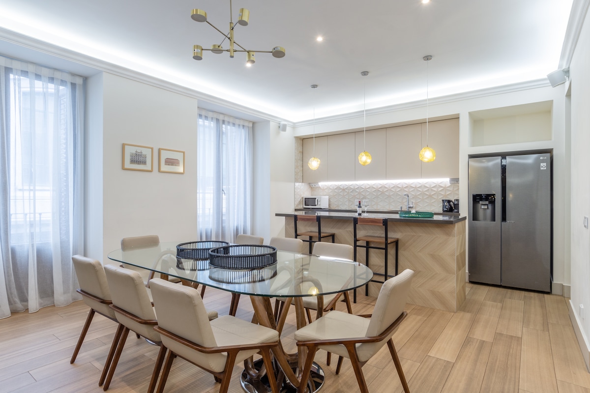 Eleganckie, klasyczne i przestronne hiszpańskie mieszkanie, w pełni odnowione w zabytkowym budynku w ekskluzywnej dzielnicy Barrio de las Letras w Madrycie. Połączenie autentycznego uroku z nowoczesnym designem. Przy pobytach dłuższych niż 3 dni oferuje bezpłatne śniadanie i sprzątanie. Apartament ten, położony kilka kroków od światowej klasy muzeów, zabytków kultury i wyśmienitej kuchni Madrytu, został przedstawiony w wiodących magazynach o wystroju wnętrz jako prawdziwa wizytówka autentycznego życia w Madrycie.