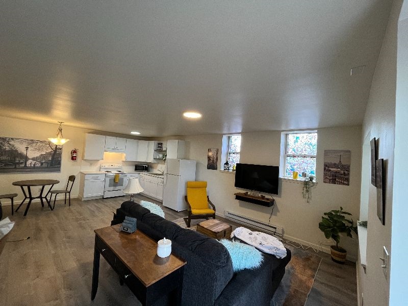 Modern Midtown Retreat: Discover our cozy 1-bed apartment, the perfect home base for exploring Hershey and Harrisburg. Located in Midtown, Harrisburg’s coolest neighborhood, you’re within walking distance of Downtown, the State Capitol, breweries, and more. Situated in the historic “Carpets and Draperies” building, originally Gerber’s Department Store (1922), this fully restored unit offers modern comforts, including free off-street parking, a fully stocked kitchen, and in-unit laundry.