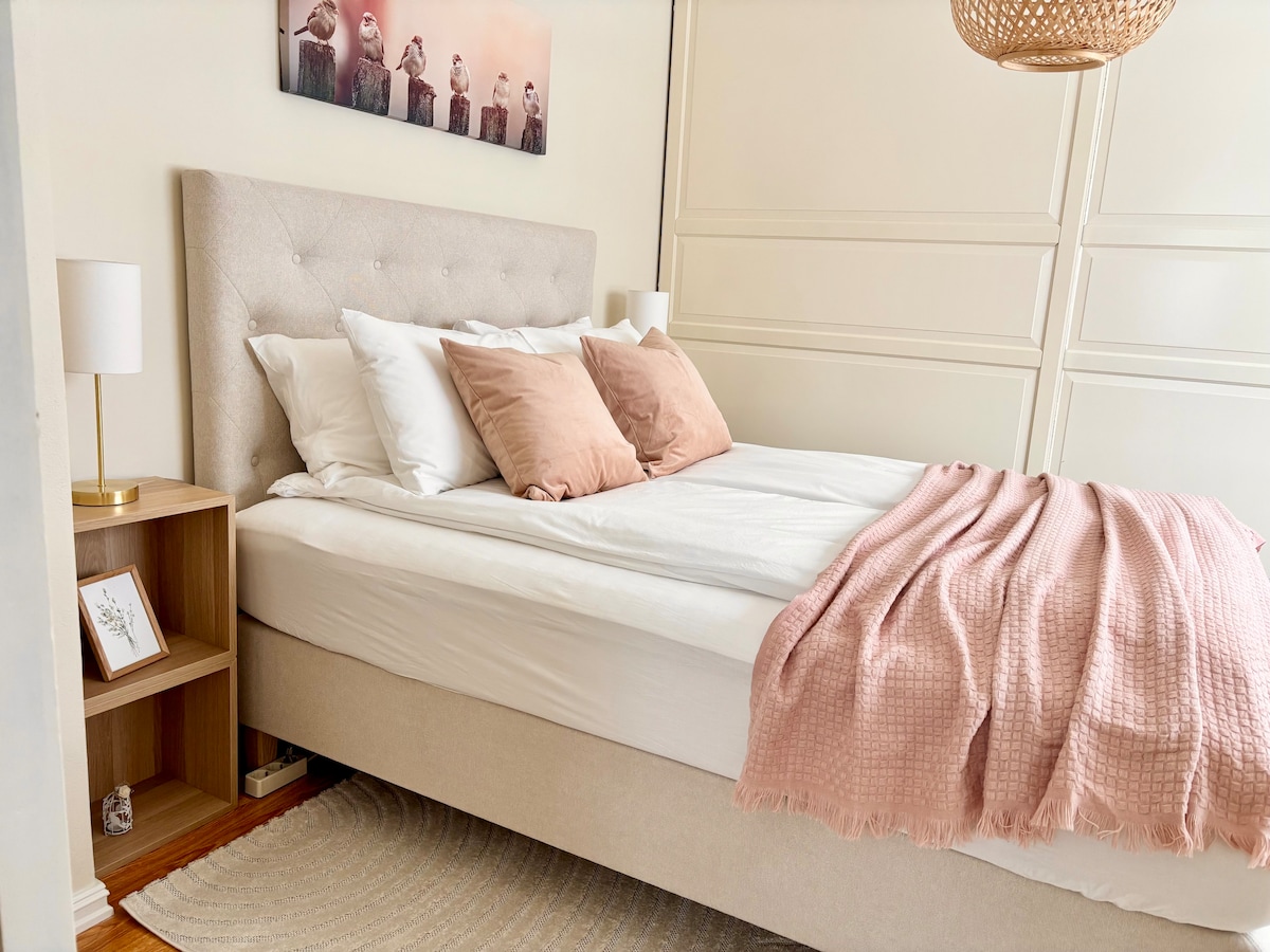 Nowo odnowione, jasne mieszkanie w cichej okolicy z bezpłatnym parkingiem. Oferuje dłuższe pobyty, Wi-Fi i przestrzeń do pracy z dodatkowym ekranem. W pełni wyposażona kuchnia, komfortowy salon z rozkładaną sofą i jedna przestronna sypialnia z dobrym łóżkiem. Całkowicie nowa łazienka z podgrzewaną podłogą. Ręczniki, pościel i podstawowe przybory są wliczone w cenę. Ciche, ciepłe i łatwo dostępne z Oslo – idealne do pracy lub relaksującego pobytu.