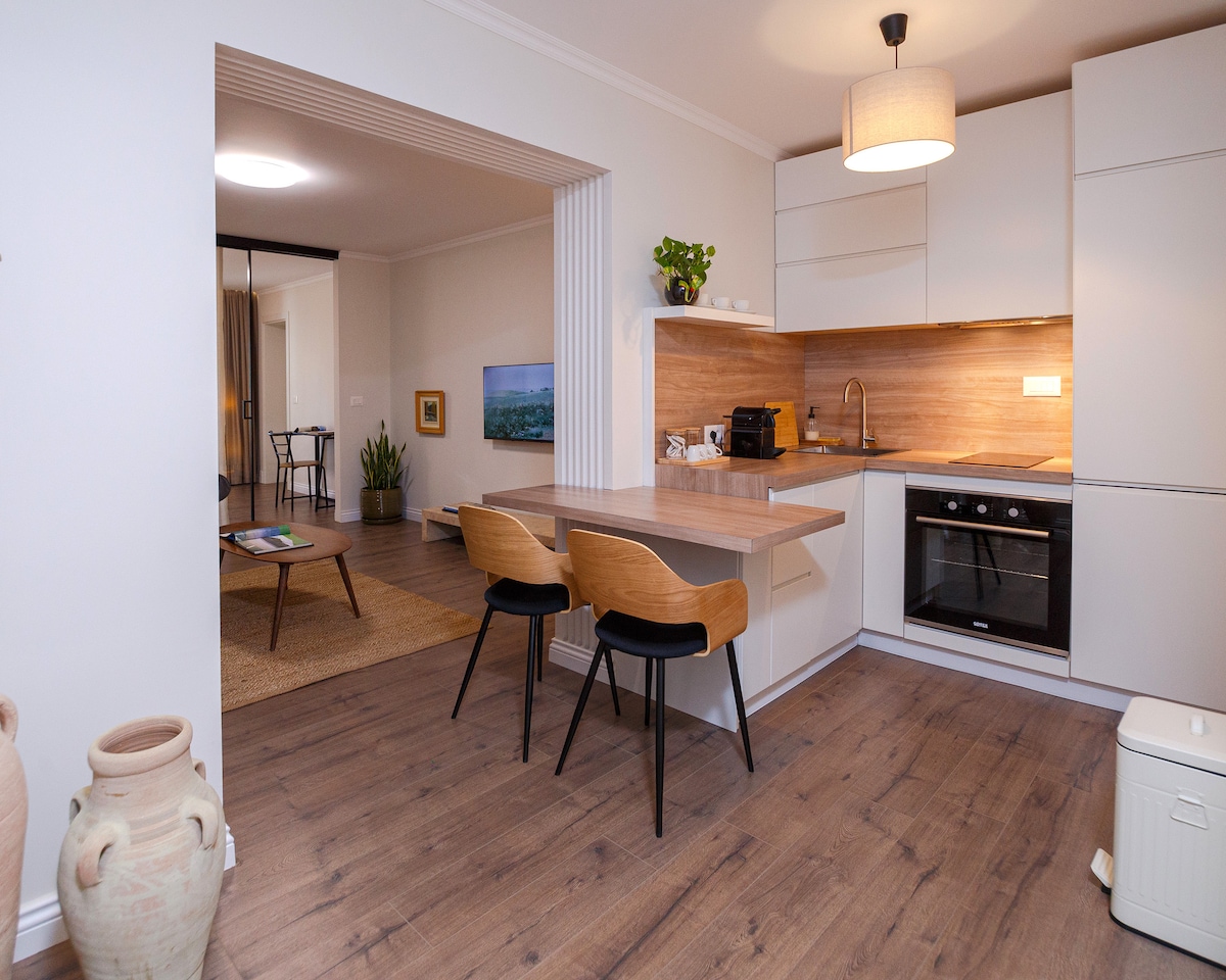 Stylowe mieszkanie na ostatnim piętrze w tętniącej życiem dzielnicy Blloku, idealne dla maksymalnie trzech osób. Ciesz się gustownym wystrojem i nowoczesnymi udogodnieniami: klimatyzacją, telewizorem Smart TV, w pełni wyposażona kuchnia, zmywarka, pralka i uroczy balkon. Rozkoszuj się komfortem przestronnej łazienki z oddzielnym prysznicem i wolnostojącą wanną. Kilka kroków od barów, restauracji i jeziora Tirana, z łatwym dostępem do dworca autobusowego, płatnego parkingu, siłowni i supermarketu. Idealna baza wypadowa do odkrywania Tirany!