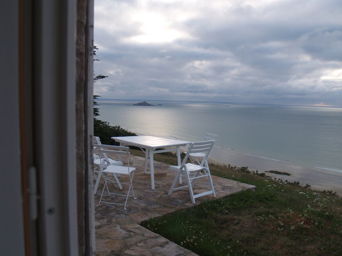 🌊 Widok na morze • Bezpośredni dostęp do plaży 🌿 Prywatna posiadłość RozVen • spokojna, dziewicza przyroda, park o powierzchni 3,9 ha 🇩🇪 Tuż nad morzem • Cicho • Ekskluzywnie 💼 Praca zdalna • Światłowód > 1 Gb/s 🔌 Bezpłatne ładowanie samochodu elektrycznego 👉 Dom zamieszkany, czasami otwarty 🍽 Coquillage (3★ Michelin – Roellinger) · 10 min 🍽 Ostrygi z Cancale 🏡 Prywatny dom 🛏 2 sypialnie • Idealne miejsce dla 2–4 osób Taras 🌞 od strony południowej 👨👩👧 Dla rodzin · gry plażowe 🇩🇪 Idealne dla rodzin • Pobyt