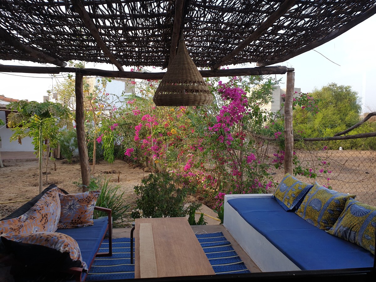 Paradise site 30 km na południe od Dakaru. 1 piękny taras do marzeń, podziwiania kajaków, słuchania fal. Niezależny apartament na pierwszym piętrze z widokiem na morze, pełen uroku. Mozaika i muszla, duża piaszczysta plaża, bezpośredni dostęp do morza. 1 salon z jadalnią, KLIMATYZOWANA sypialnia, 1 aneks kuchenny, 1 łazienka z ciepłą wodą. Duży schowek, moskitiery, wentylatory. Bezpłatne Wi-Fi. Opiekun 7 dni w tygodniu, możliwość zamówienia posiłków. ENERGIA ELEKTRYCZNA W SUP.