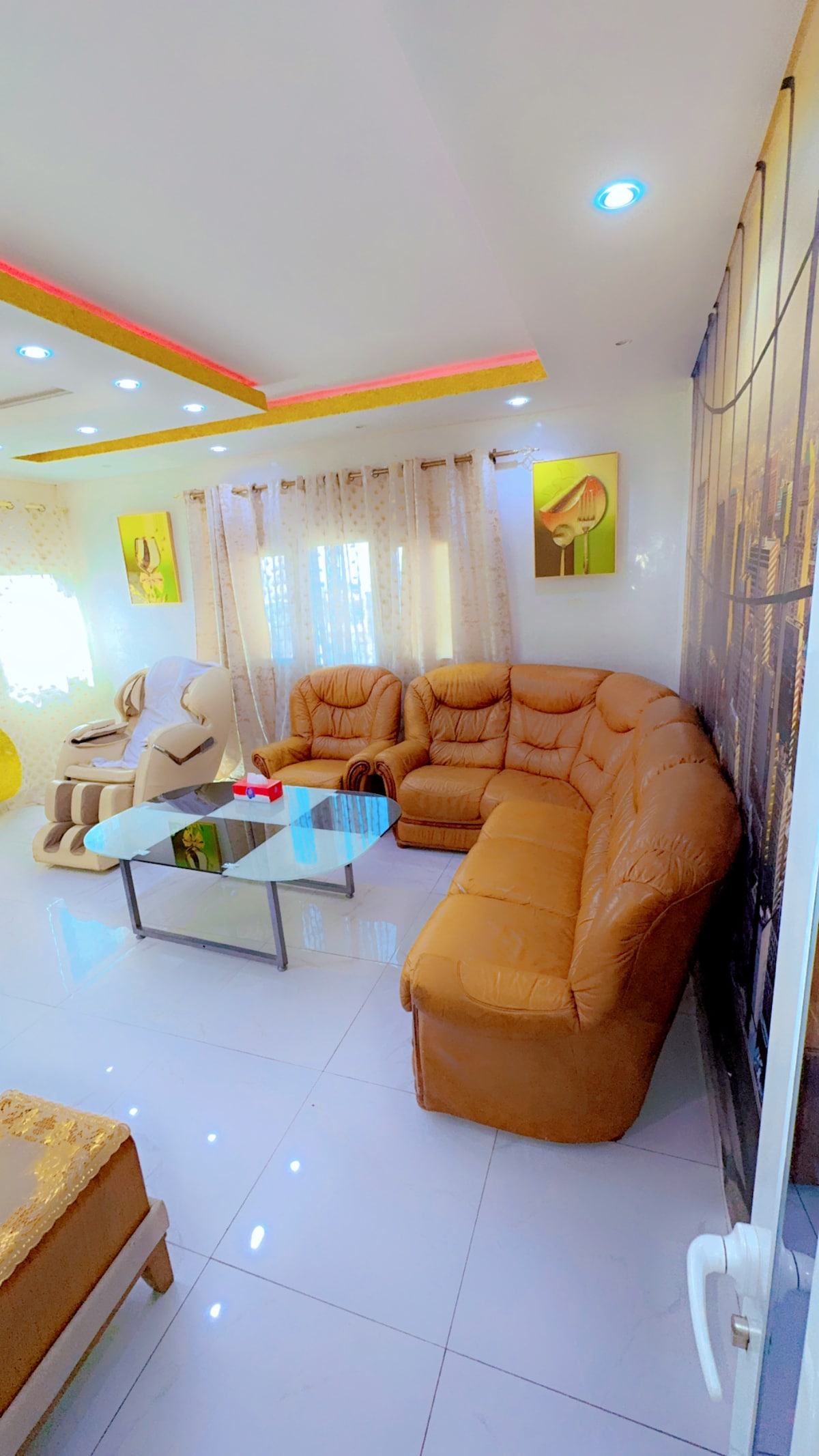 Luxueux appartement F3 meublée à la Cité des Fonctionnaires de Diamniadio. 2 chambres climatisées avec salle de bain (eau chaude, Jacuzzi) et salon cuisine Américaine. • Cuisine équipée : salle à manger; Machine à laver ; fer à repasser; machine à café ; grille pain ; mixeur ; micro onde; réfrigérateur…etc. • Salon : grande télévision et abonnement canal sat ; WIFI; A proximité de commerces, à 30 mn de la plage de Saly et Somone; Mbour, à 10 mn de l'aéroport AIBD; à 30 du centre ville de Dakar