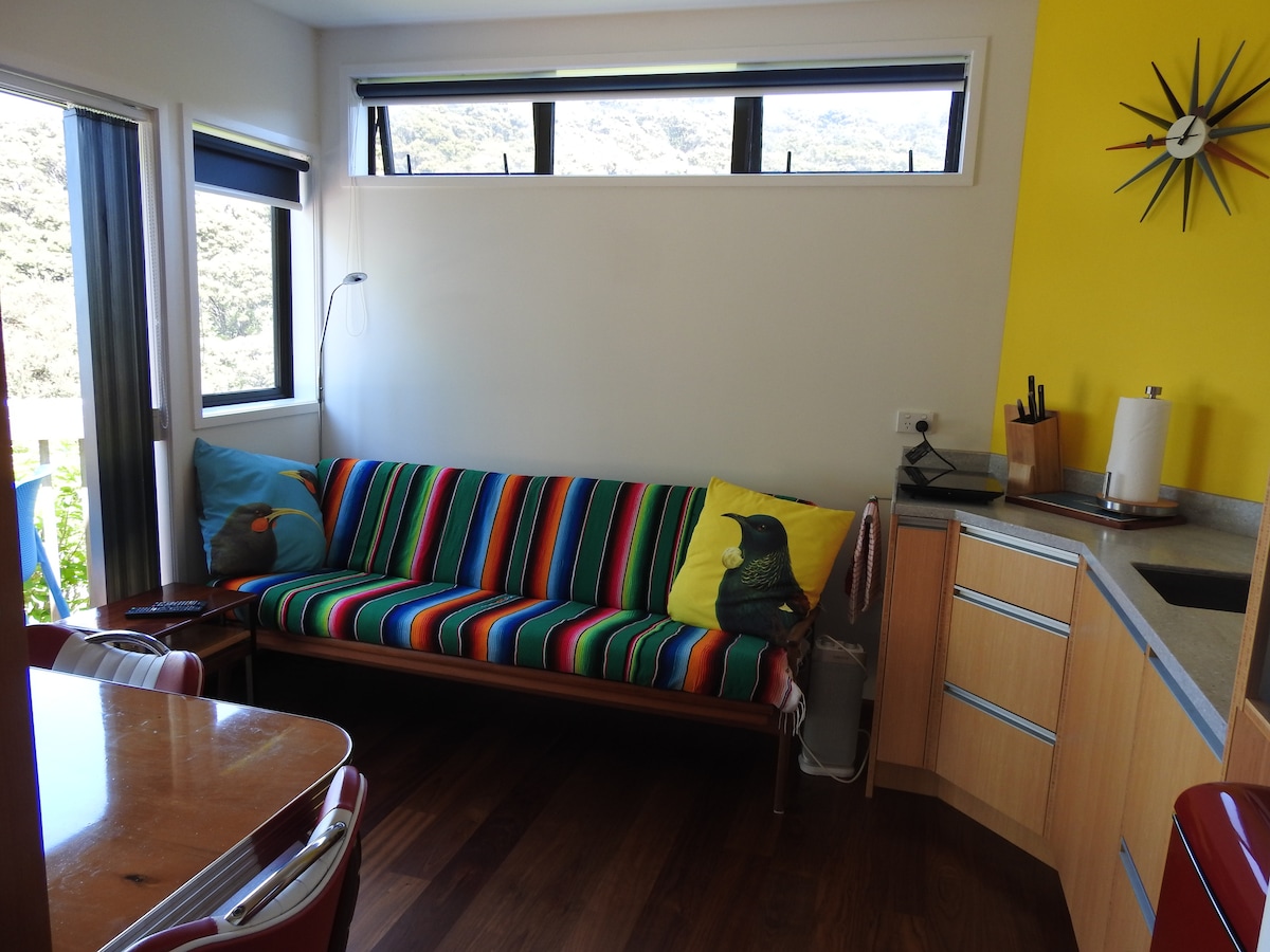 Samodzielny (przyłączony do reszty domu) własny dostęp z zewnątrz, sypialnia, kuchnia/salon, łazienka z prysznicem i wanną. Śniadanie: herbata/kawa itp., organiczne owoce sezonowe, domowe bułeczki/dżem/przetwory. Nieograniczony dostęp do Wi-Fi. W ciągu 20 minut: Kerikeri, targowiska, fabryka czekolady, lotnisko, plaże Paihia, tereny traktatowe Waitangi, jaskinie stalagmitowe Glow worm, Kaikohe, gorące źródła termalne, Okaihau, las Puketi kauri, najstarsze domy NZ, 8 minut jazdy do trasy rowerowej/pieszej.