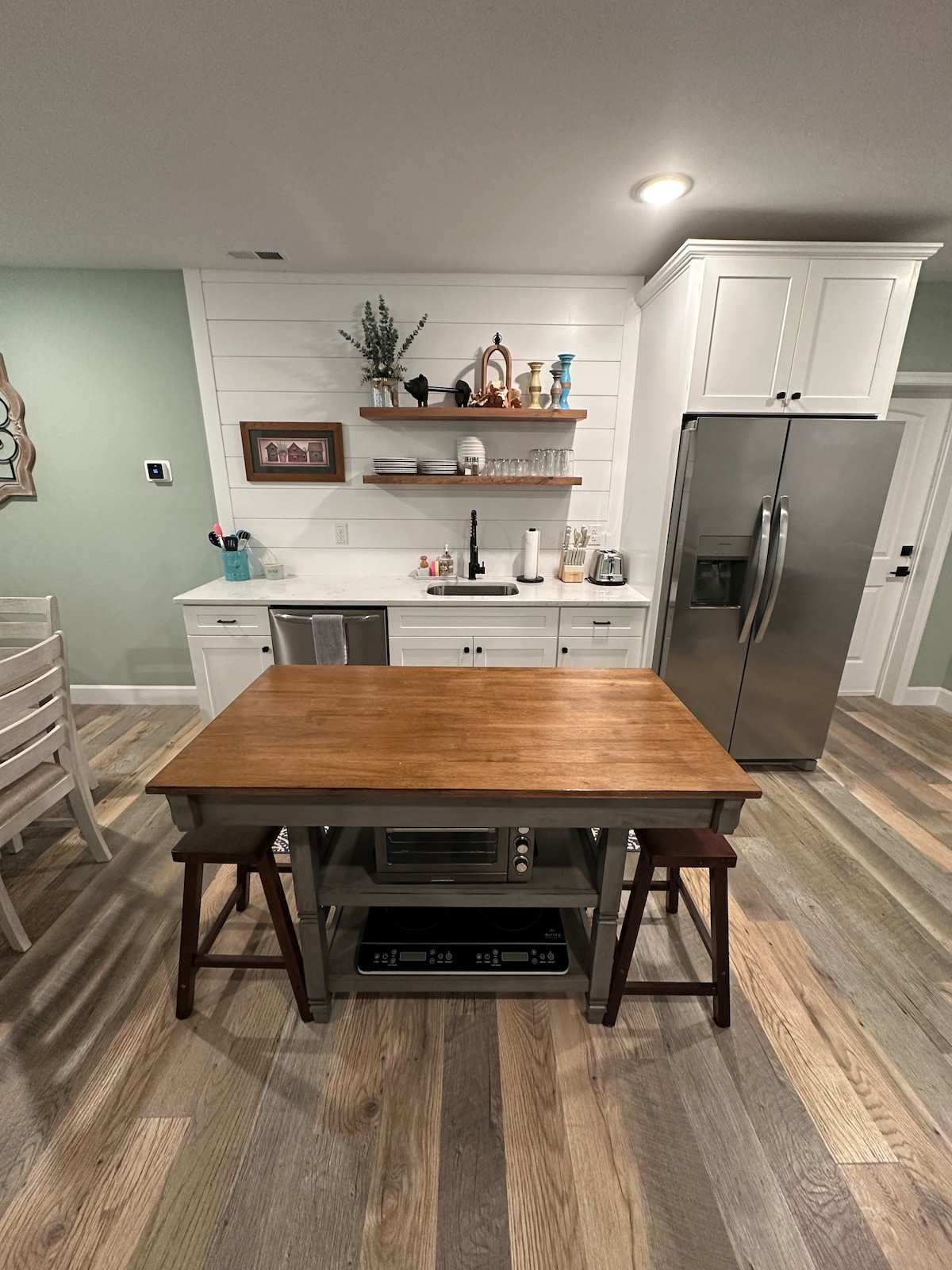 Położony 8 minut od LU, ten apartament na poziomie tarasu zapewnia stylową i funkcjonalną przestrzeń. Posiada prywatny, zewnętrzny obszar z jadalnią, miejscami do siedzenia i pięknymi widokami. Prywatny podjazd, wejście i dostęp za pomocą kodu. Kuchnia wyposażona jest w toster, płytę grzewczą i ekspres Keurig wraz z wszystkimi niezbędnymi naczyniami. 2 sypialnie, 1 łazienka – 2 łóżka typu queen i 1 zestaw łóżek piętrowych. UWAGA: nasza rodzina (wraz z małymi dziećmi mieszka nad apartamentem, ale staramy się zapewnić spokojny pobyt.