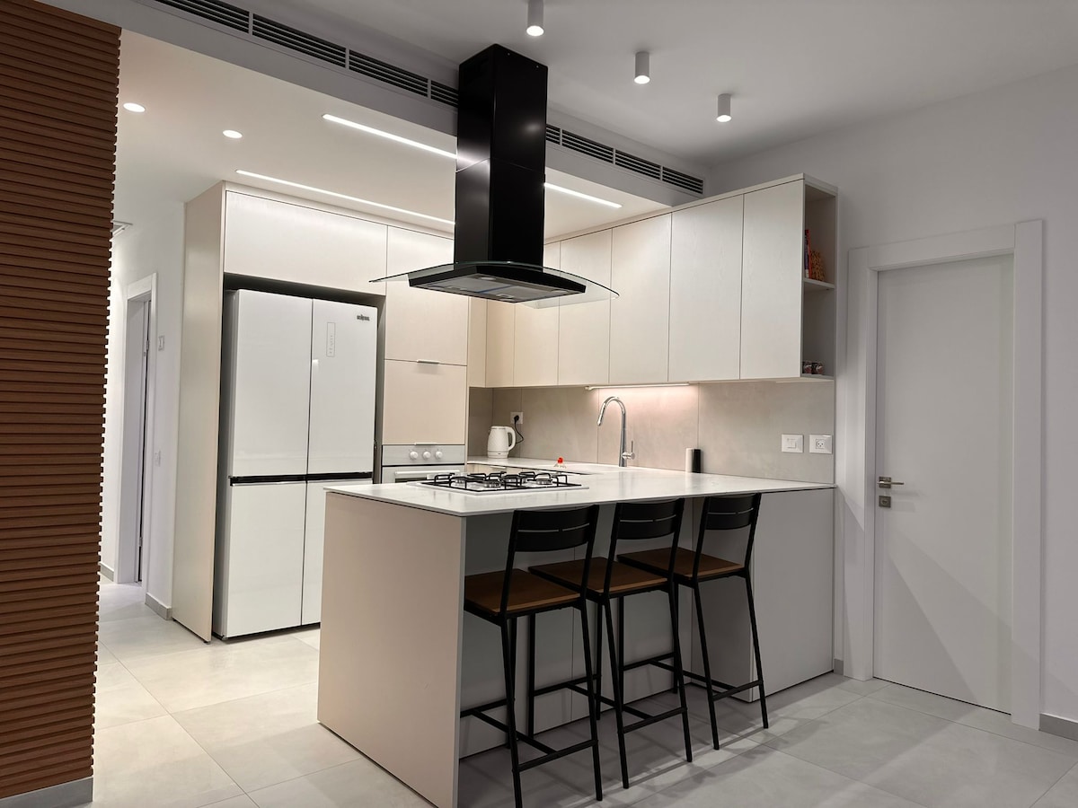Nowy miejski apartament wakacyjny z wysokiej jakości wykończeniem i nowoczesnym, tylnym i cichym wystrojem w samym sercu dzielnicy mieszkalnej w Ramat Gan. Wyposażone we wszystko, czego możesz potrzebować podczas pobytu. Regulowane łóżko, 3 inteligentne telewizory, w pełni wyposażona kuchnia z ekspresem do kawy, kuchenka mikrofalowa, pralka i suszarka, przytulny balkon do picia kawy rano. Odpowiednie dla rodzin/par/singli. Położony w samym sercu miasta, z łatwym dostępem do Ramat Gan College, Tel Hashomer Hospital, Ramat Gan National Park (Safari), centrum handlowego i rekreacyjnego, Merom Neve Park, przez większość dnia dostępny jest transport publiczny. Duży parking na ulicy i pobliskich ulicach.