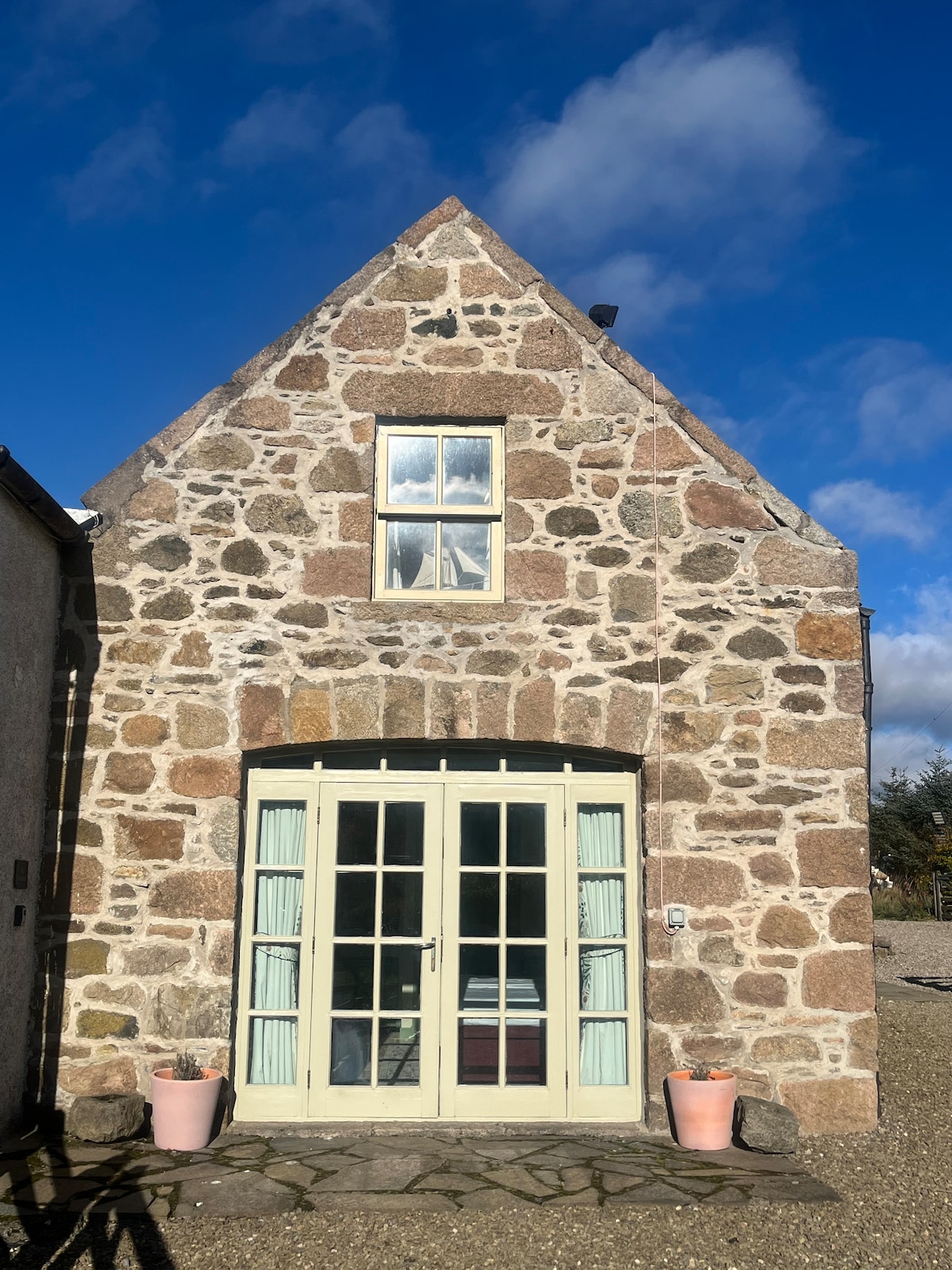 Domek to jednopokojowy domek z własnym wyżywieniem, który zawiera 2 pojedyncze łóżka, stół, krzesła, fotele i kuchnię. W cenę wliczona jest zamknięta łazienka z prysznicem, toaletą i umywalką. Woda jest dostarczana z Cromdale Hills za pośrednictwem systemu filtracji. Domek jest w pełni izolowany i ogrzewany, aby zapewnić przytulne otoczenie. Rozrywka składa się z telewizora, wideo i głośnika boom bar bluetooth. Domek znajduje się w pobliżu tylnej części domu, co zapewnia gościom prywatność. Dostępne jest Wi-Fi.