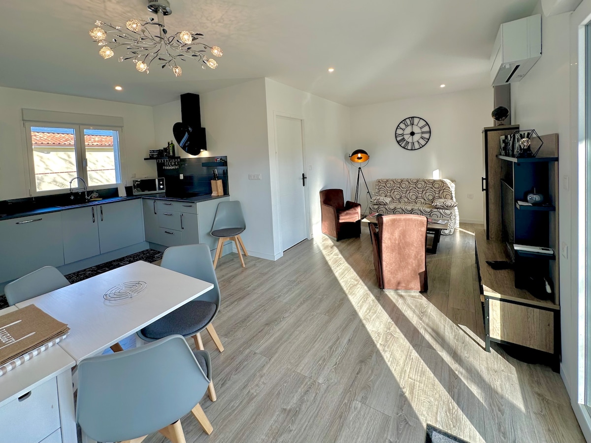 Witamy w naszym pięknym nowym domu Mieszkanie składa się z 2 sypialni z podwójnym łóżkiem oraz rozkładanej sofy w salonie, w pełni wyposażonej kuchni, a także pięknego zadaszonego tarasu. Odkryj skarby Lotu z jego malowniczymi wioskami, lokalnymi targowiskami i zabytkami. Korzystaj z aktywności wodnych nad jeziorem Catus, malowniczych wędrówek, przejażdżek rowerowych po okolicznych szlakach i wrażeń z paralotniarstwa w pobliżu.