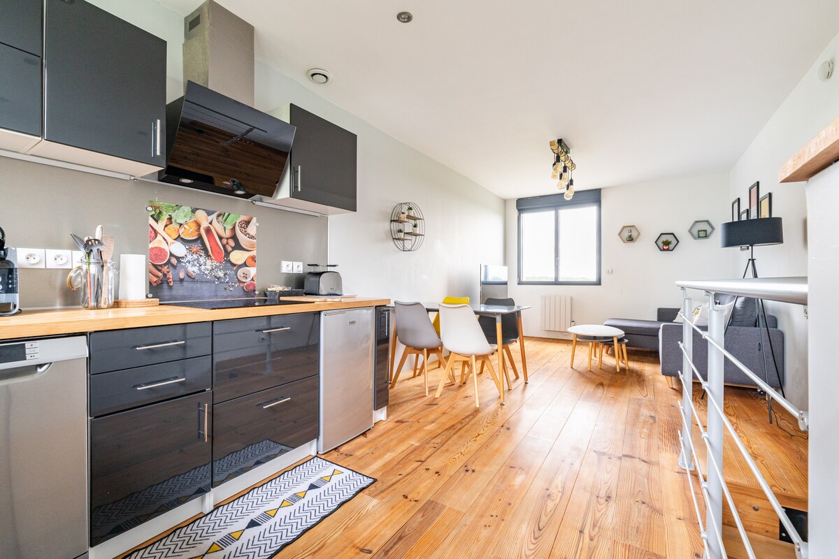 Uroczy apartament typu duplex, gustownie urządzony, w samym sercu Starego Lille: - 10 minut spacerem od dworca Lille Flandres i Lille Europe - 10 minut spacerem od stacji metra Rihour lub Lille Flandre - 5 minut spacerem od Wielkiego Placu - 1,5 km (20 minut spacerem) od Zénith de Lille - 12 km od stadionu Grand Stade Pierre Mauroy w Villeneuve-d'Ascq (15 minut samochodem lub 40 minut metrem) - 12 km od lotniska Lille-Lesquin Parking podziemny, rowery V'Lille, autobusy... wszystko jest w pobliżu.