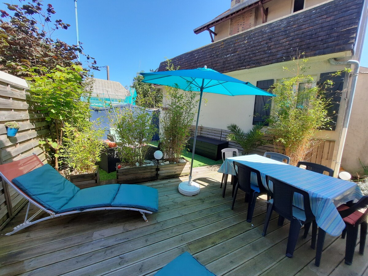 Uroczy dom nad morzem dla 4/5 osób, pokój dzienny z otwartą, w pełniosek, wyposażoną w sprzęt, kanapa, łazienka z toaletą, pralnia. Piętro: korytarz, 2 umeblowane pokoje. Przyjemne otoczenie, taras, stół, krzesła, leżaki, salon, prywatny zamknięty dziedziniec, szopa, grill, prywatny parking. Wi-Fi. Zaledwie 50 m od morza i 1,2 km spacerem od wszystkich sklepów w miasteczku, 15 minut od Caen. Wynajem tygodniowy w lipcu i sierpniu od soboty do soboty, poza tym okresem minimalnie 3 noce Pościel i ręczniki wliczone w cenę. Przyjazd od godziny 3:00, wyjazd najpóźniej do godziny 11:00.