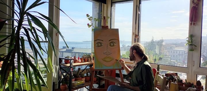 Narysuj portret w Stambule z widokiem na Bosfor