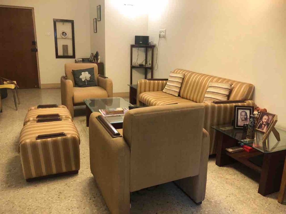 położony w samym centrum dzielnicy handlowej, Tnagar. naprzeciwko świątyni Tirumala Tirupathi Devasthanam. Nasze mieszkanie znajduje się na trzecim piętrze (dostępna winda) apartamentu Temple Tree, ma klimatyzację we wszystkich 3 sypialniach, salonie. Wi-Fi, lodówka, pralka, grzejnik i w pełni wyposażona kuchnia. Biometryczne drzwi główne umożliwiają łatwe zameldowanie. zniżki za pobyt długoterminowy. Ponieważ jest to apartament, preferowany jest pobyt rodzinny, a imprezy / hałas są niedozwolone.