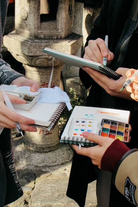 Family travel sketchbooking in Kyoto
