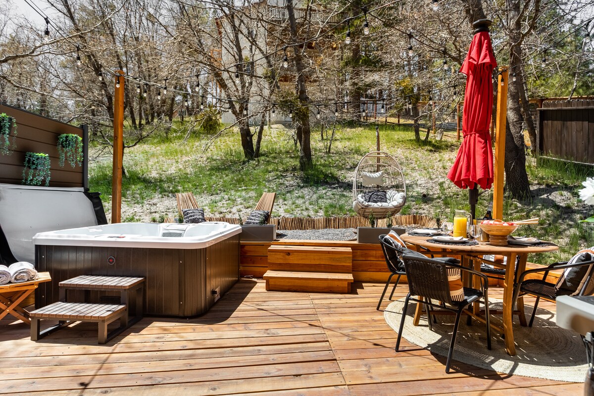 Witamy w The Den, domku z lat 60. zaprojektowanym przez LBL Design Co. Ten nastrojowy, romantyczny dom łączy w sobie sufity z motywem migdałów, ciepłe odcienie drewna i nowoczesne wykończenia – a do tego prywatne jacuzzi pod sosnami. Idealnie położona w Górach San Bernardino, jest to baza wypadowa na śnieżne dni, przygody na szlakach i przytulne noce przy ognisku. Popijaj wino na tarasie, piecz s'moresy pod gwiazdami i odpoczywaj na naszej miękkiej aksamitnej sofie przy kominku.