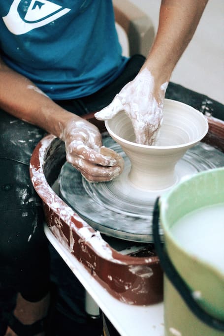 Spinning art with professional potter