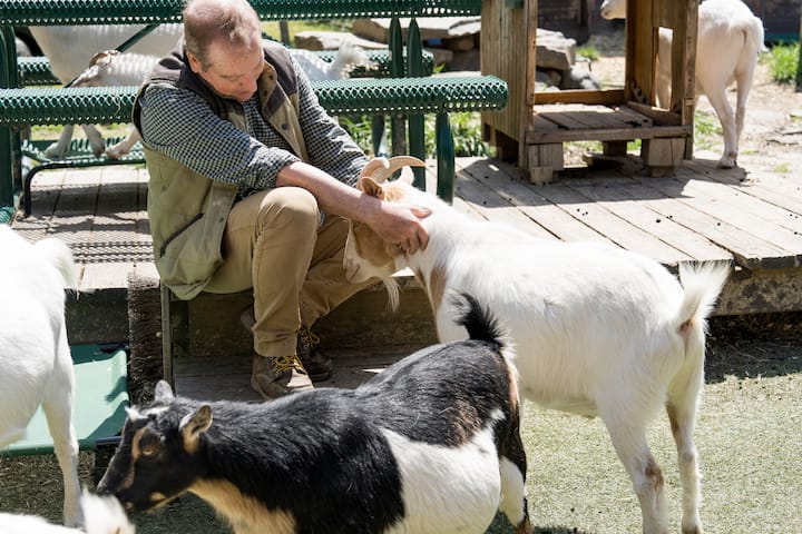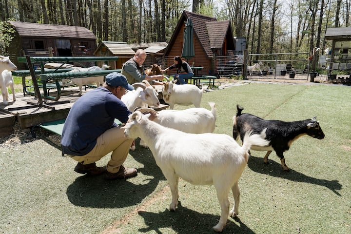 Uściski i wędrówka z kozami z przytulnego schroniska