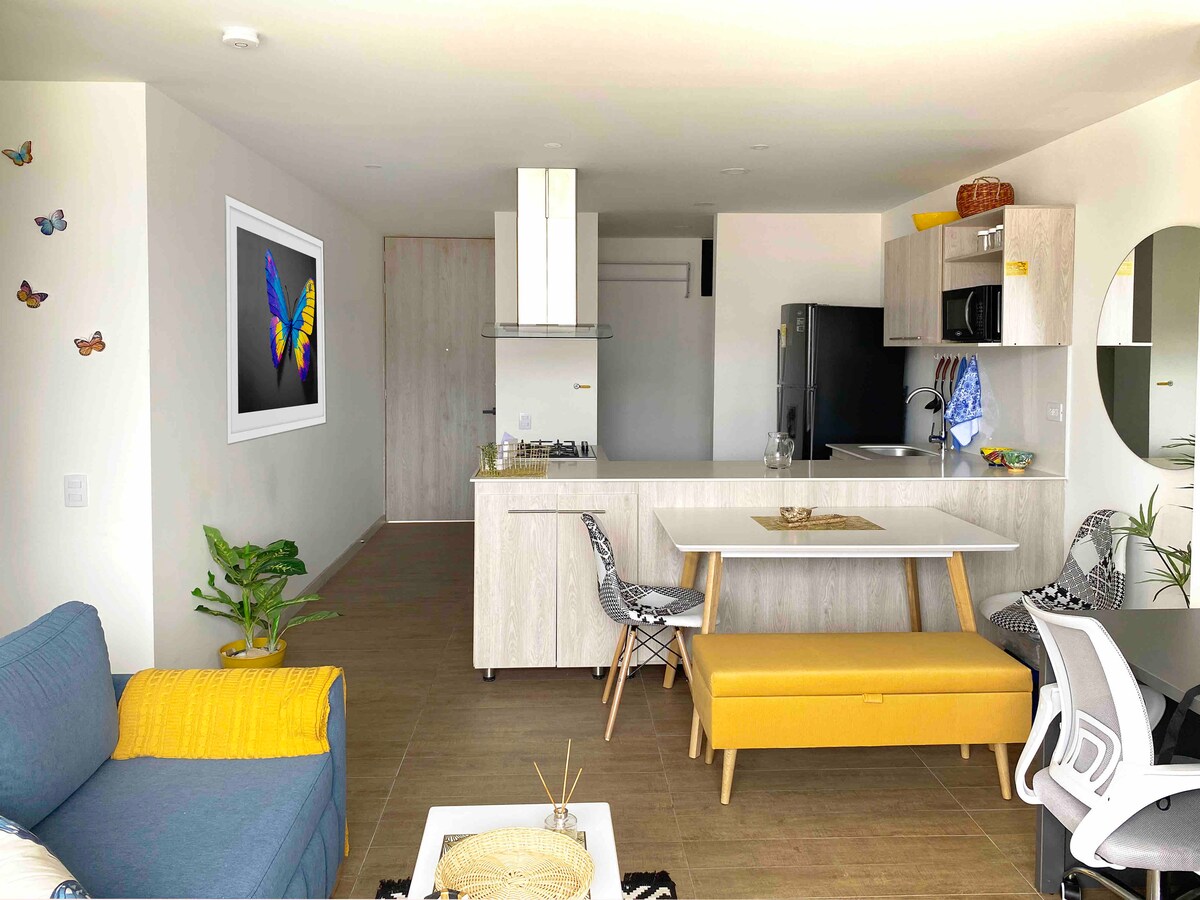 Najlepsze wspomnienia trwają wiecznie. Z tego pięknego i przytulnego apartamentu można podziwiać imponujący górski krajobraz i nowoczesność miasta Sabaneta, w sektorze La Doctora. Ten nowoczesny apartament z jednym pokojem wita Cię spektakularnym widokiem z balkonu, idealnym na długi i krótki pobyt. Pokochasz tę przestrzeń ze względu na jej bliskość do parku miejskiego, miejsc turystycznych, restauracji, barów i centrów handlowych.