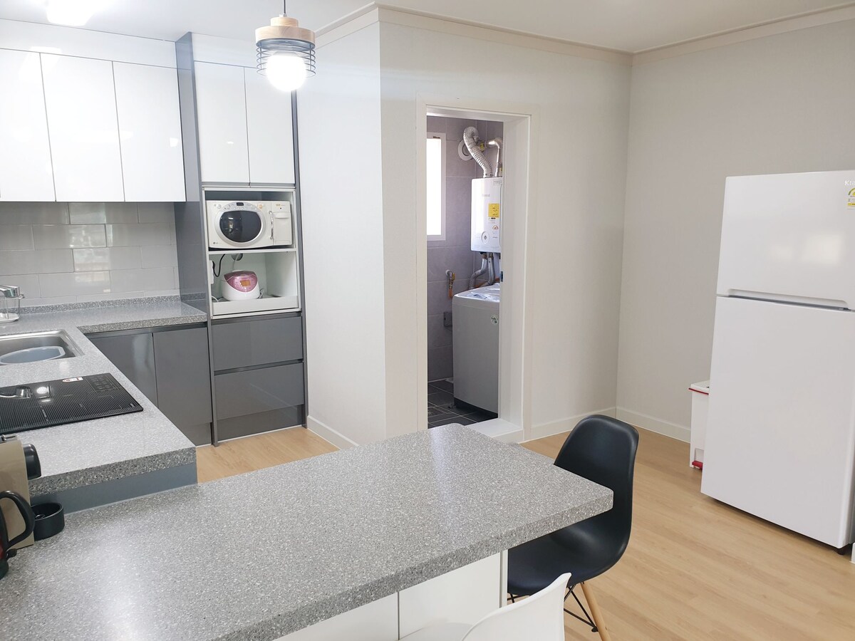 * Nasz dom, Gyumiga, znajduje się w centrum miasta, ale jest to rzadkie miejsce, które łączy w sobie jednocześnie wieś i morze.Znajduje się 3 minuty od ulicy z kawiarniami Anmok, 2 minuty od plaży Namhang Jinhae i 8 minut od jeziora Gyeongpo. * Dom o powierzchni 165 metrów kwadratowych, 3 piętra, działka o powierzchni 823 metrów kwadratowych, przestrzeń tylko dla jednej grupy * Rynki w centrum miasta # Chodang Sundubu # Ojukheon # Centrum Sportowe # E-Mart 5 minut, Hanaro Mart 3 minuty # - wszystko w pobliżu * To przytulne miejsce, w którym po przebudzeniu rano można poczuć piękno śpiewu ptaków, zapach sosny, bambusa i akacji pod jasnym niebem. * Na zewnątrz - taras (patio), hamak, mini kort do badmintona, strefa fotograficzna.Możesz też skosztować świeżych warzyw z ogrodu Jest to przestrzeń. @1. Kuchnia na 2. piętrze. Łazienka jest dostępna oddzielnie *Salon na 1. piętrze (kanapa).Kuchnia (lodówka, kuchenka gazowa). Sypialnia, łazienka. * 2 piętro - salon (biurko komputerowe. sofa), kuchnia (lodówka, zlewozmywak,kuchenka mikrofalowa), sypialnia, łazienka, ciekawy strych. * 3 piętro - poddasze - podwójne łóżko. Stół, przy którym można wypić herbatę. Dźwięk deszczu jest jak sztuka.