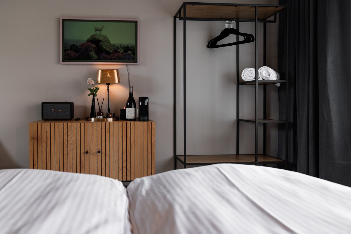 Ten przytulny, nowo wyremontowany apartament w centrum Reykjaviku łączy jasny skandynawski wystrój z ciepłym, artystycznym klimatem. Ciesz się łatwym dostępem do najlepszych kawiarni, sklepów, muzeów i kultowych zabytków w mieście - wszystko w odległości spaceru. • Stylowa, nasłoneczniona przestrzeń mieszkalna • Nowoczesny aneks kuchenny, w pełni wyposażony • Wygodne podwójne łóżko i zasłony zaciemniające • Smart TV i szybkie Wi-Fi • Idealna centralna lokalizacja Przewiń w dół, aby dowiedzieć się więcej o amnestiach, przestrzeni i lokalizacji :)