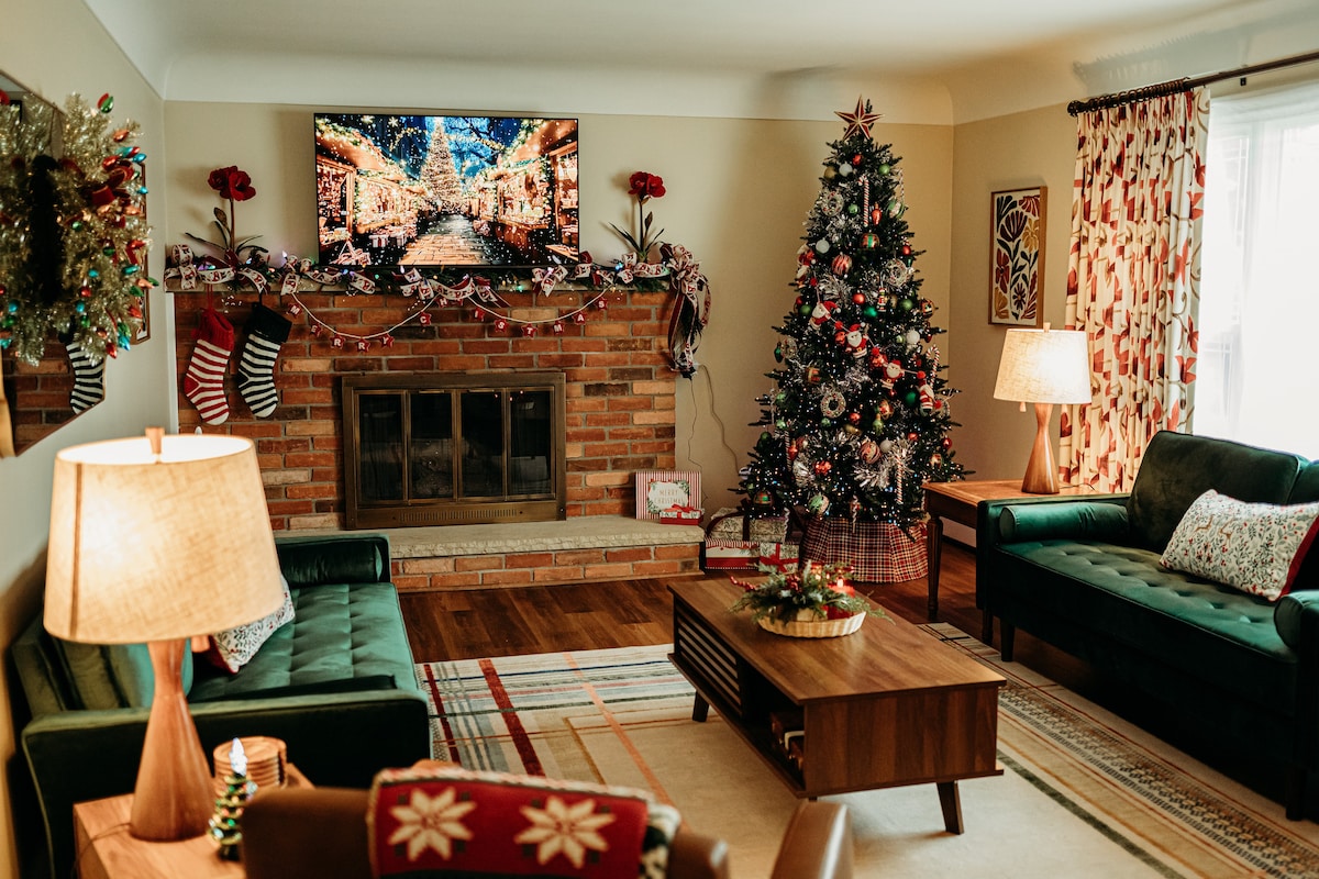 Wyobraź sobie, że rozkoszujesz się gwarem i zabawą Małej Bawarii w Michigan, a następnie wracasz do cichej, prywatnej, ustronnej farmy, aby się zrelaksować. To jest scenariusz, który czeka na Ciebie w Holiday Haven, gdzie nie musisz zostawiać za sobą świątecznej radości Frankenmuth, ponieważ znajdziesz jej akcenty w całym domu – a nawet całą sypialnię świąteczną. Będziesz mieć do dyspozycji w pełni wyposażoną kuchnię, gry, telewizory w większości sypialni, miejsce na ognisko, szybkie Wi-Fi i wiele więcej – wszystko w odległości 1,5 mili od centrum Frankenmuth.