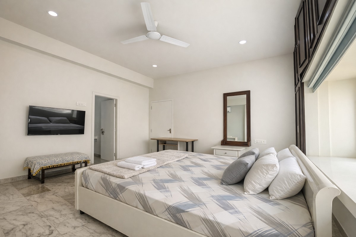 Ciesz się komfortowym pobytem w tym nowym mieszkaniu z 2 sypialniami z jasnymi, czystymi klimatyzowanymi sypialniami – idealnym dla rodzin, NRI i podróżujących służbowo. Dom oferuje w pełni wyposażoną kuchnię z wodą RO, kuchenką indukcyjną, przyborami, ryżowarem, lodówką, czajnikiem, szybkim Wi-Fi, gejzerami, zapasowym falownikiem, telewizorem Smart TV i zadaszonym parkingiem. Zrelaksuj się w fotelu do masażu RoboTouch premium. Zaledwie 15 minut od zjazdu 8 z ORR, w pobliżu szpitali, supermarketów, a do Swiggy/Zomato można dojechać w mniej niż 10 minut.