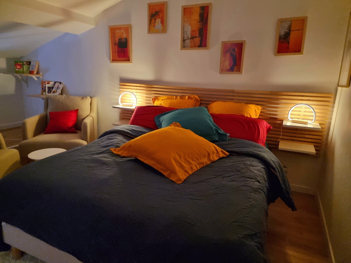 To 19-metrowe mieszkanie z ciepłym wystrojem jest idealnie położone w samym sercu średniowiecznego miasta, w pobliżu Tour du Roy i starej pralni, a także sklepów i restauracji. Jest wyposażony w aneks kuchenny z czajnikiem, ekspresem do kawy TASSIMO, płytą indukcyjną, kuchenką mikrofalową. Będziesz mieć również telewizor z płaskim ekranem i bezpłatne Wi-Fi.