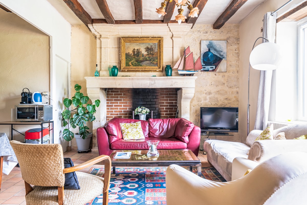 IDEALNE MIEJSCE NA ZWIEDZANIE ZAMKÓW LOARY 2-6 osób Bardzo wygodny apartament w słynnym domu Pans Wood "RED HOUSE" w Chinon. W średniowiecznej dzielnicy, u podnóża Zamek, bardzo blisko centrum. OBEJMUJE: kartę parkingową na miejskie parkingi *, Wi-Fi, przygotowane prześcieradła i łóżka, ręczniki, produkty ...