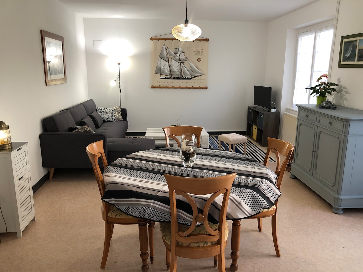 Wspaniały apartament położony naprzeciwko portu Saint-Cast-Le-Guildo, 700 m od dużej plaży i centrum miasta. Idealnie położony, aby odkryć Szmaragdowe Wybrzeże, w bezpośrednim sąsiedztwie słynnego Fort la Latte, wyspy Ebihens, itp. Możesz korzystać ze wszystkich atrakcji, takich jak nurkowanie, kajakarstwo, żeglarstwo... Apartament posiada podwójne łóżko oraz kabinę sypialną z dwoma łóżkami. Do dyspozycji gości jest w pełni wyposażona kuchnia, a także restauracje w porcie...