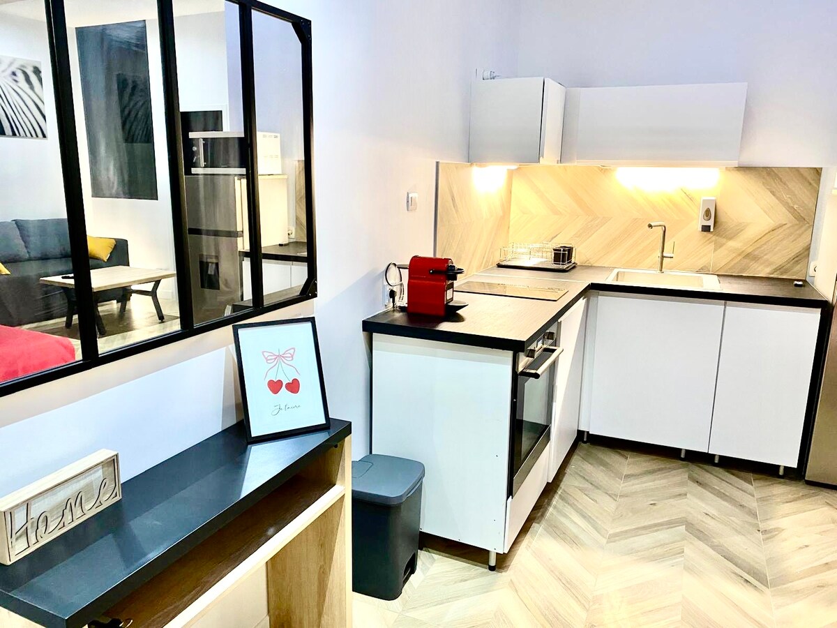 Bourgoin jallieu à proximité du centre ville appartement T2 entièrement rénové comprenant salon-séjour, dégagement avec rangements, cuisine indépendante toute équipée, 1 chambre avec placard et une salle d’eau avec WC. Le bien dispose d’une terrasse privative de 22m2 avec 1 place de parking. Environnement calme. Belle exposition. Proche des commodités (gare, commerces, cinéma, accès autoroute…). Equipements: store banne, barbecue, télé, bureau, machine à laver, lave vaisselle, frigo, cafetière…