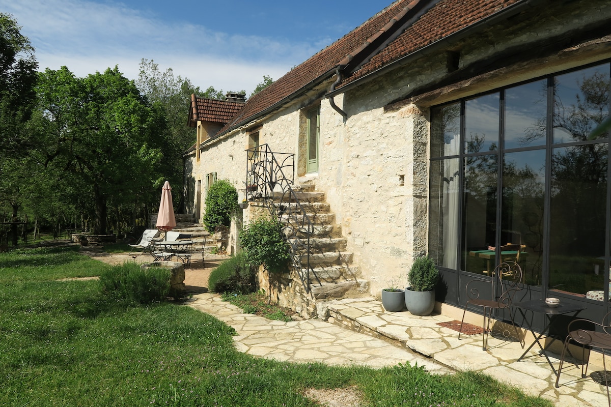 Idealnie położony na styku departamentów Lot, Corrèze i Dordogne, nasz apartament dwupoziomowy będzie idealnym miejscem do relaksu w ciszy, jednocześnie korzystając z kilku tematów zwiedzania: turystycznych, gastronomicznych lub sportowych, poprzez wiele niezwykłych miejsc wokół Sarlat, Rocamadour lub Saint-Cyr Lapopie... i wiele innych. Z myślą o nadaniu drugiego życia różnym meblom, apartament ten został całkowicie odnowiony i wyposażony tak, aby zapewnić Ci „kokonowanie”.