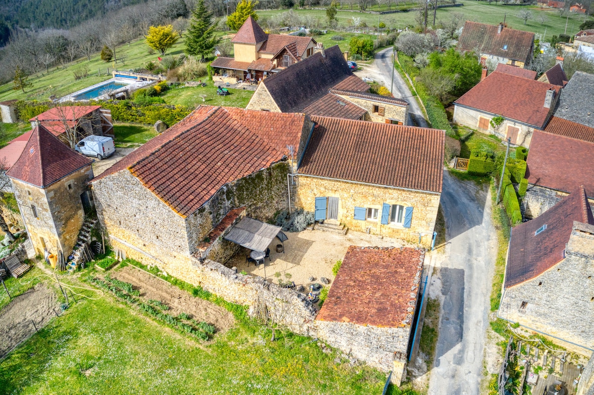 Funkcjonalny i niezależny domek w otoczeniu bukszpanów, orzechów włoskich, zwierząt, szlaków turystycznych i atrakcji turystycznych. Absolutny spokój, mile widziani miłośnicy przyrody. Prysznic w małej kuchni, pokój z łóżkiem 160x200 i łóżeczkiem dziecięcym na życzenie. Sucha toaleta na zewnątrz. Zadaszony taras, grill. W wiosce można wypożyczyć rowery, przejechać się ścieżką rowerową, zrobić zakupy w sklepie z żywnością ekologiczną, popływać po rzece Dordogne, skorzystać z oferty restauracji w sezonie. Telewizor z filmami na pamięci USB. Wi-Fi czasami kapryśne Idealne położenie!!!