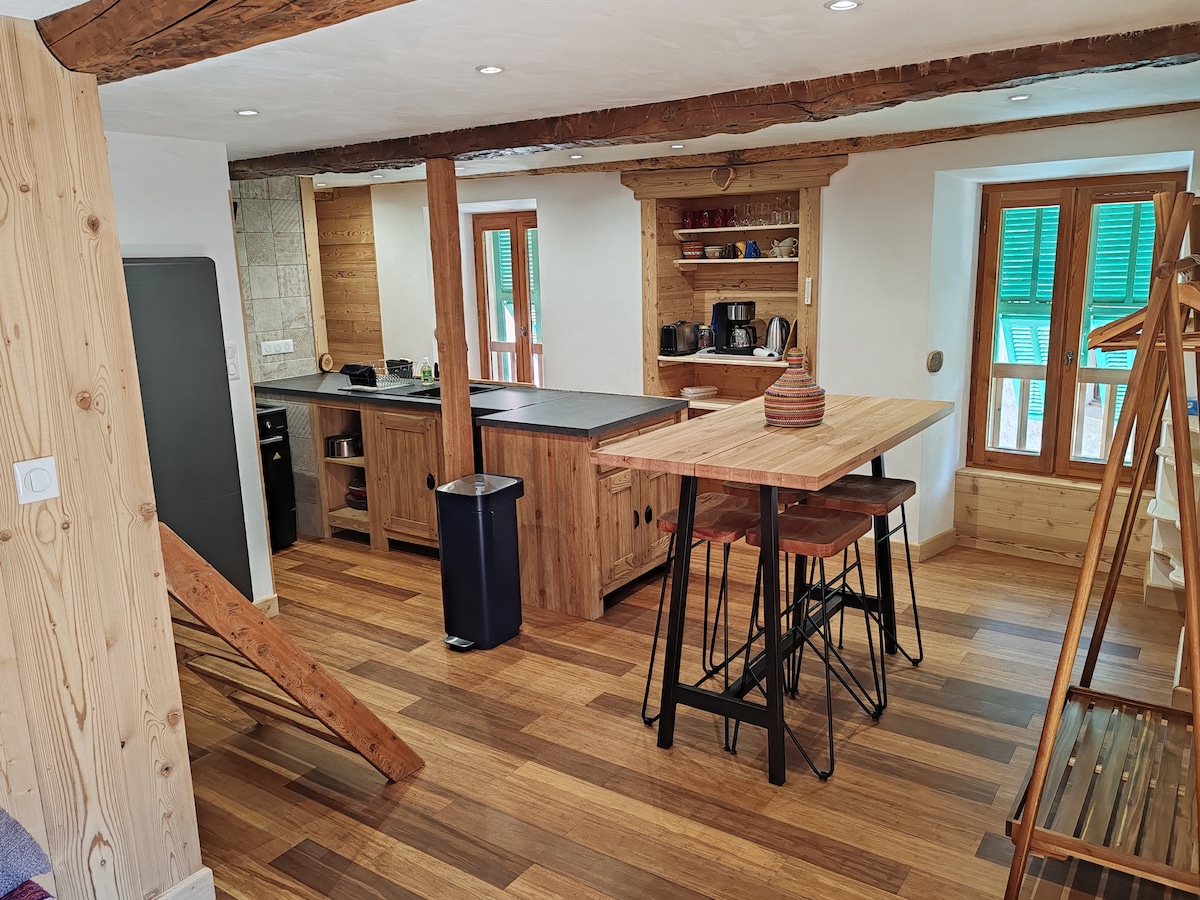 To wspaniałe studio z odnowioną kabiną z łóżkami piętrowymi, położone na pierwszym piętrze, oferuje doświadczenie łączące nowoczesność i górski klimat. Zapewniamy pościel i ręczniki! + Wystawienie południowe + Pokój z łóżkami piętrowymi oddzielonymi drzwiami przesuwnymi + Prywatny parking wewnątrz + Urządzenie do raclette i fondue. + Wi-Fi Apartament znajduje się w pobliżu centralnego placu (5-7 minut pieszo)
