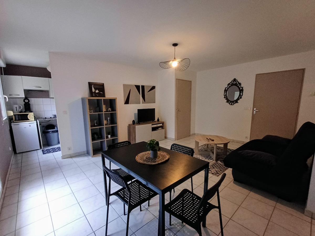 W Creuzier-le-Vieux, zaledwie 10 minut od centrum Vichy, ciesz się spokojnym pobytem w 40 m² mieszkaniu zaprojektowanym dla Twojej wygody. Idealny dla par lub małych rodzin, ten domek łączy w sobie urok, nowoczesność i przyrodę. Najciekawsze: – 1 sypialnia + sofa – do 4 osób – Ogród i taras z widokiem na wzgórza - Klimatyzacja zapewniająca optymalny komfort latem - W pełni wyposażona kuchnia – Spokojna okolica, blisko szlaków turystycznych i ścieżek rowerowych