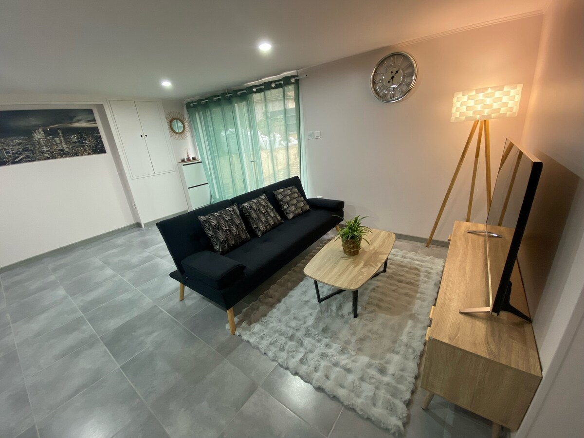 Prawdziwy kokon relaksu, zaledwie 6 minut od autostrady. Klimatyzowane zakwaterowanie, idealne dla par, na podróż służbową lub dla małej rodziny (do 2 dzieci). Dom o powierzchni 27 m² z podwójnym łóżkiem, rozkładaną sofą dla 2 osób i łóżeczkiem dziecięcym na życzenie. W pełni wyposażona kuchnia, Wi-Fi, telewizor, cicha przestrzeń do pracy zdalnej. Prywatny taras, łatwy parking. Spokojne otoczenie, wiejski klimat, blisko sklepów: piekarnia, sklep tytoniowy, supermarket, restauracje. Gwarantowany komfort i spokój.